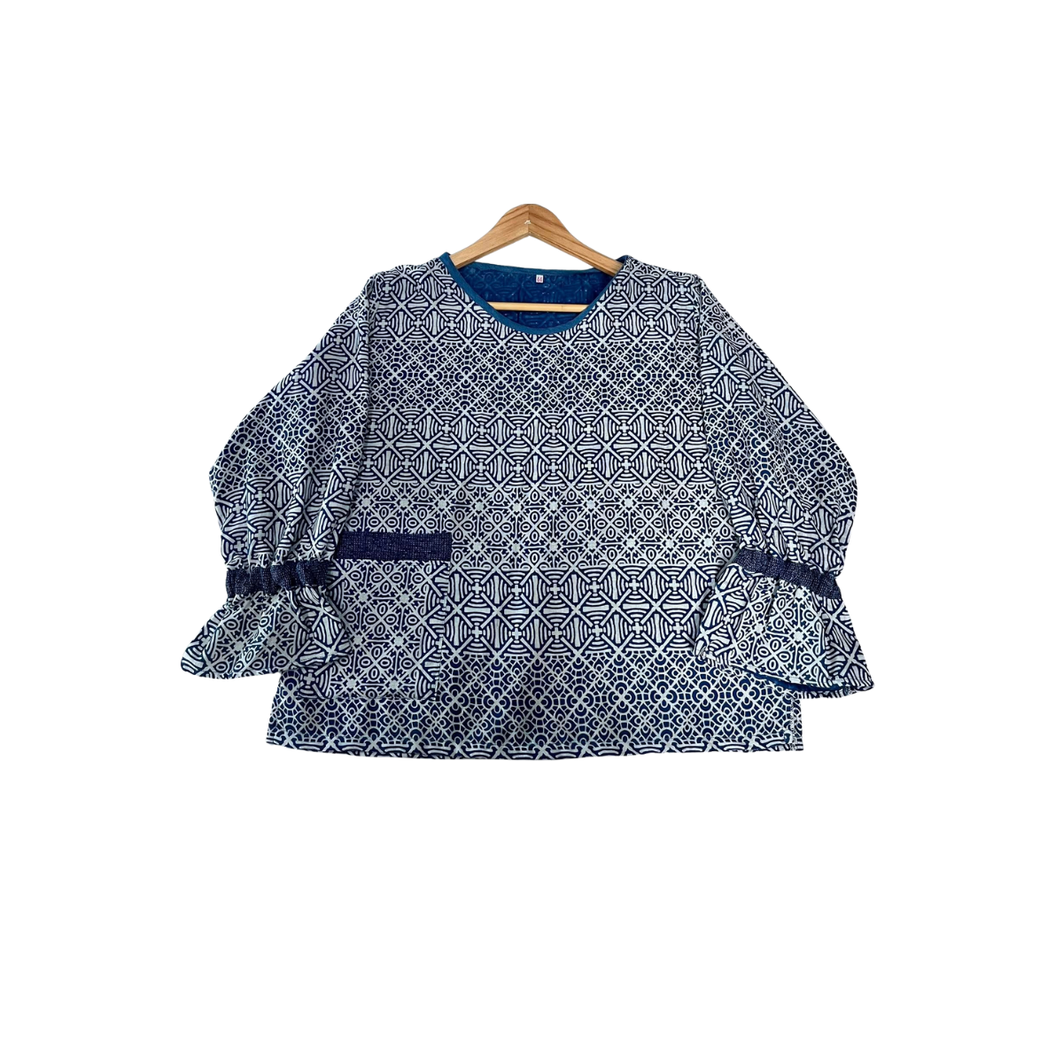 ดีไซน์: ทรงปีกนก, คอวี, แขนยาวทรงกระบอกพร้อมปลายระบาย,